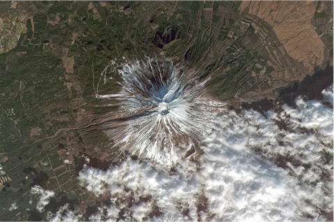 WNISAT-1R衛星に関する研究は、株式会社ウェザーニューズ社との共同研究で実施しました。上記画像は、超小型衛星Hodoyoshi-1で 観測された富士山です。 観測日2015-12-29 02:09UTC